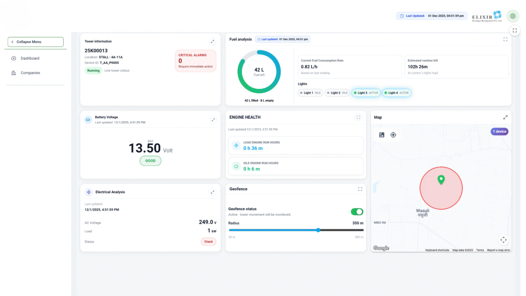 - Live data streaming from the genset controller to a single dashboard.